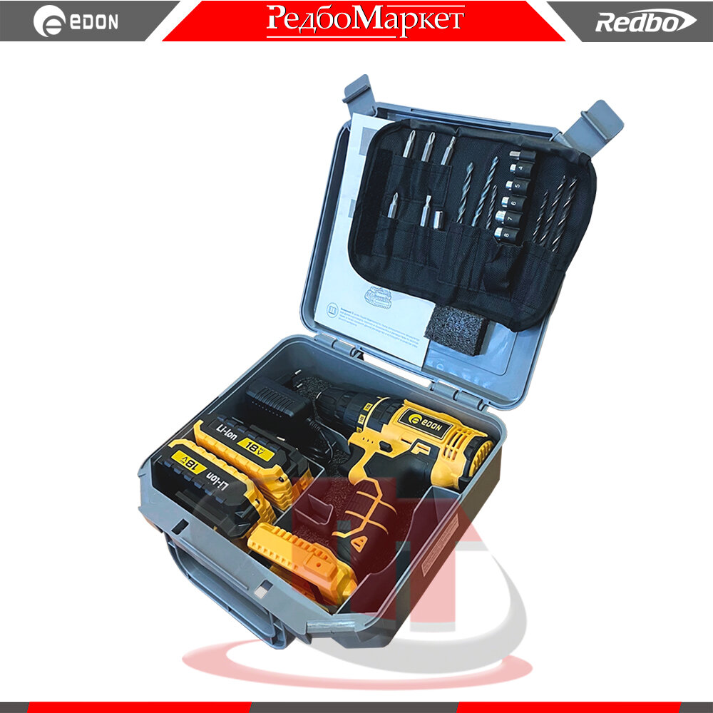 Аккумуляторная дрель-шуруповерт Edon AD-18E с набором насадок