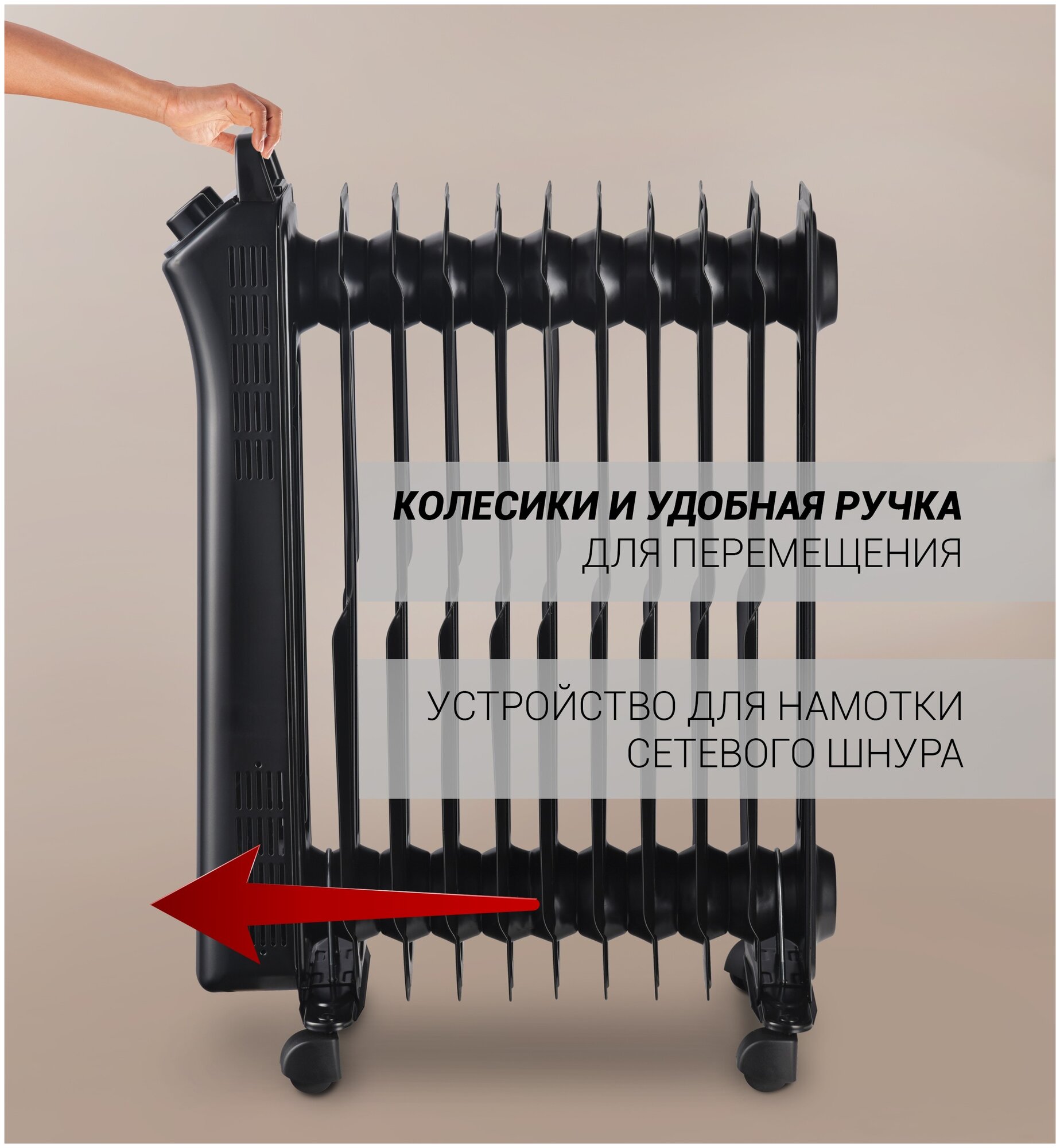 Масляный радиатор Радиатор масляный Polaris POR 0425, 11 секций, 2500 Вт, черный