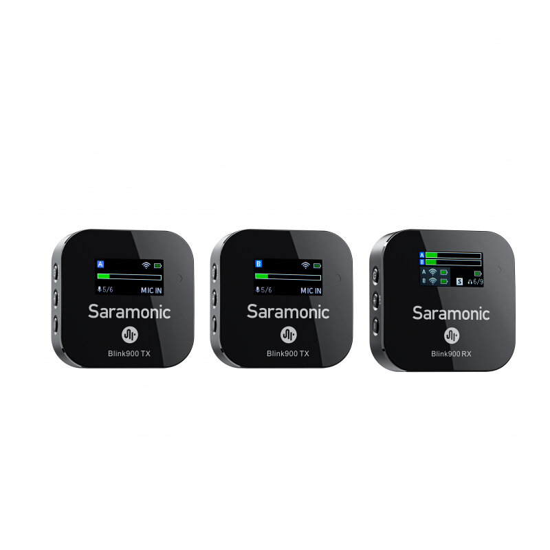 Микрофоны Saramonic Blink900 B2 (TX+TX+RX) Радиосистема 2,4Ггц приемник + 2 передатчика, разъем 3,5мм