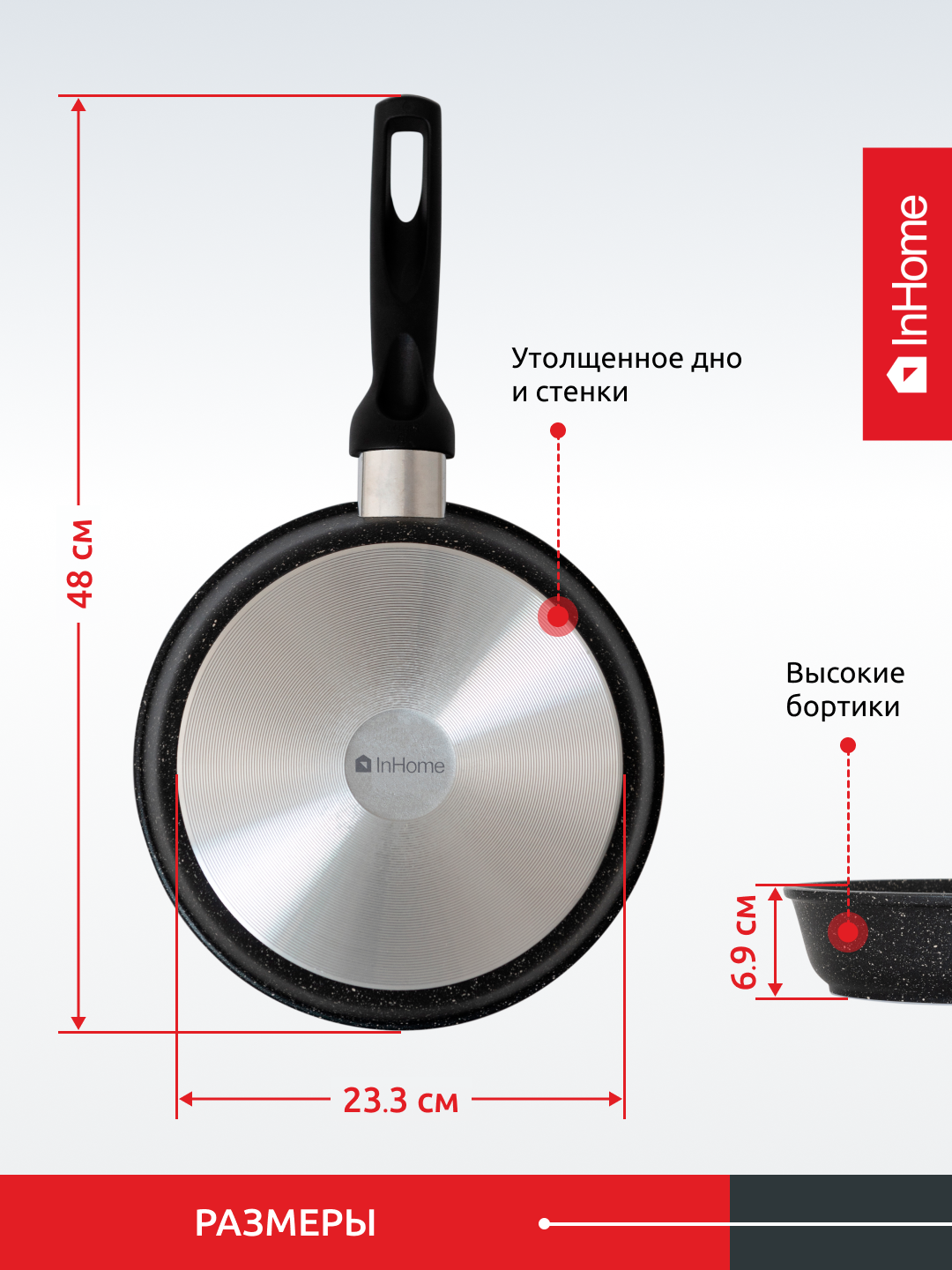 Литая сковорода с антипригарным покрытием InHome, IN18/MR0 1 232 ₽ Подробнее