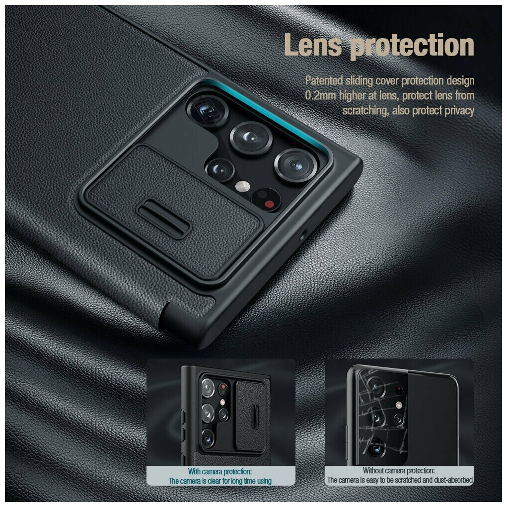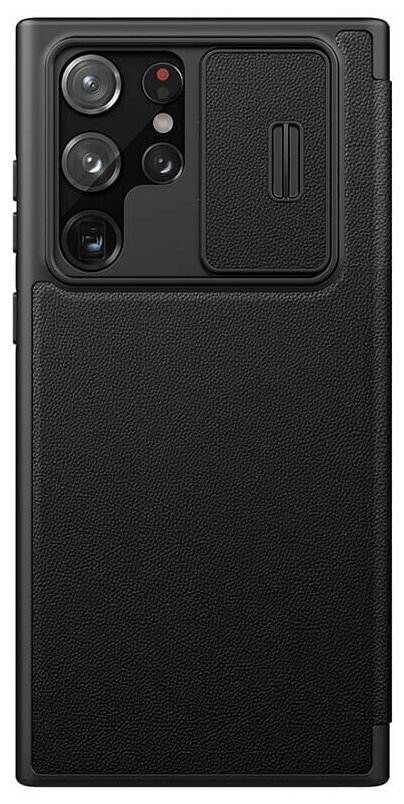 Чехол Кожаный чехол-книжка с защитой камеры Nillkin Qin Pro Leather Case (plain leather) для Samsung Galaxy S22 Ultra, черный