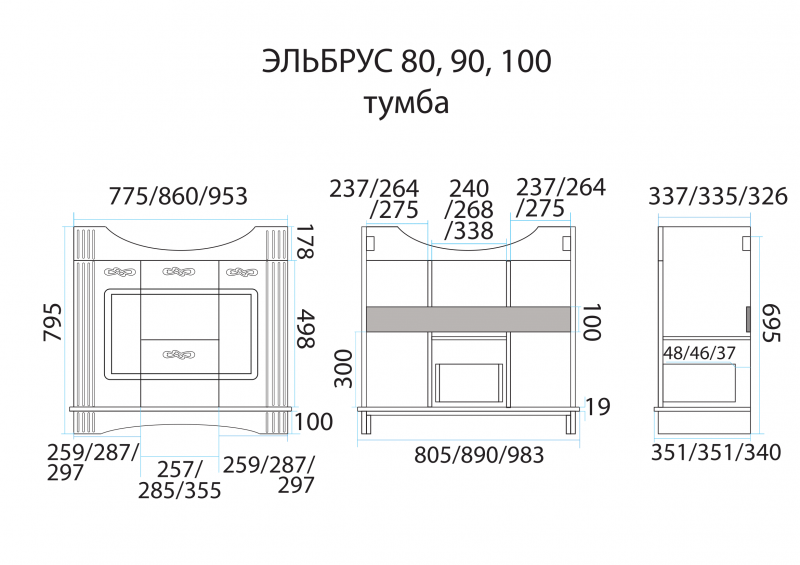 | Комплектация | умывальник полки ручкидоводчикиножки (Santek Эльбрус 90) |