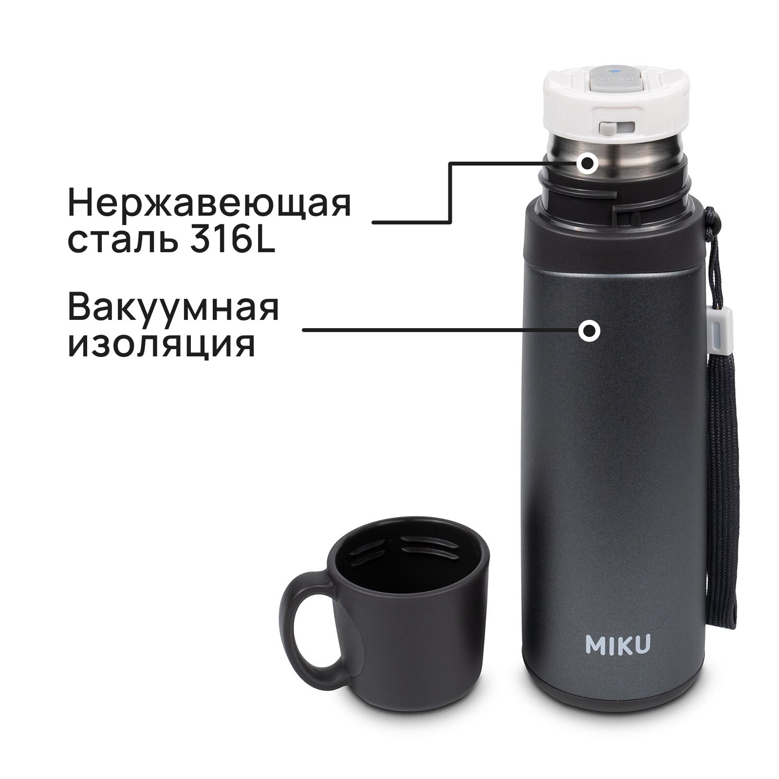 Термосы Термос для напитков MIKU 520 мл (Серый)