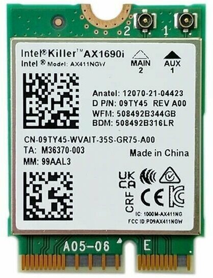 Wi-Fi оборудование Сетевой адаптер Intel Killer 1690i AX411NGW Wi-Fi 6E
