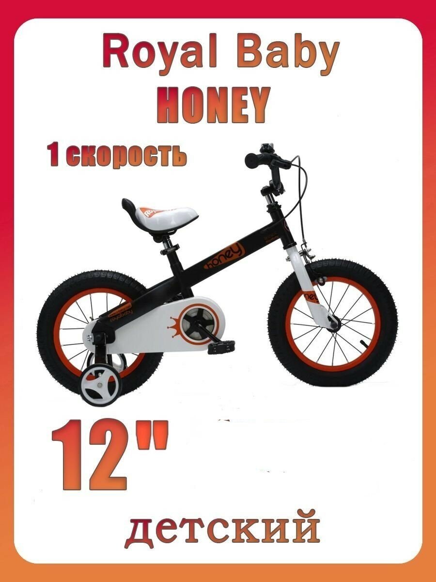 Детские велосипеды Велосипед детский с боковыми колесами Royal Baby 12" HONEY черный