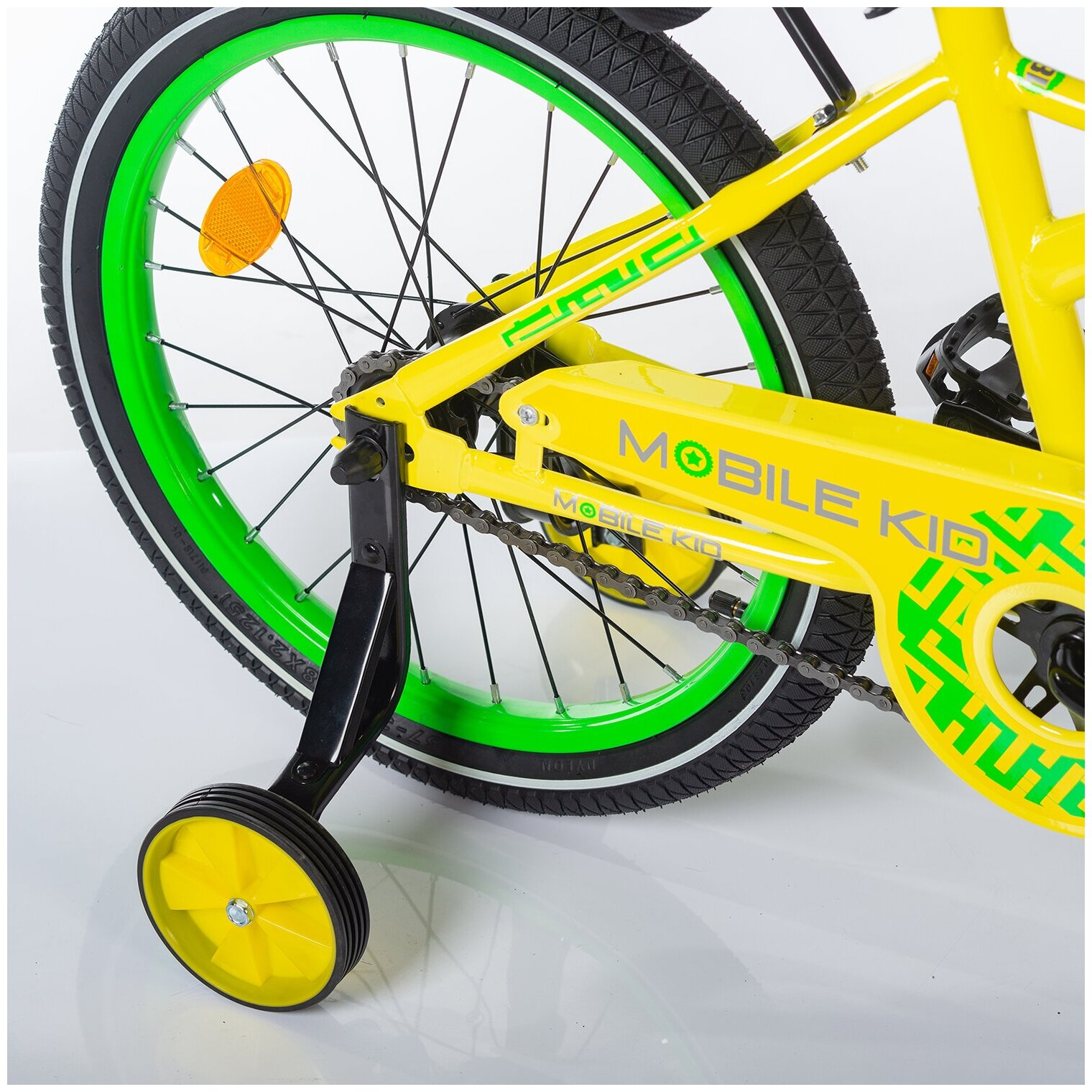 Детский велосипед Велосипед детский с тренировочными колесами Mobile Kid Slender, 18 дюймов, желто-зеленый