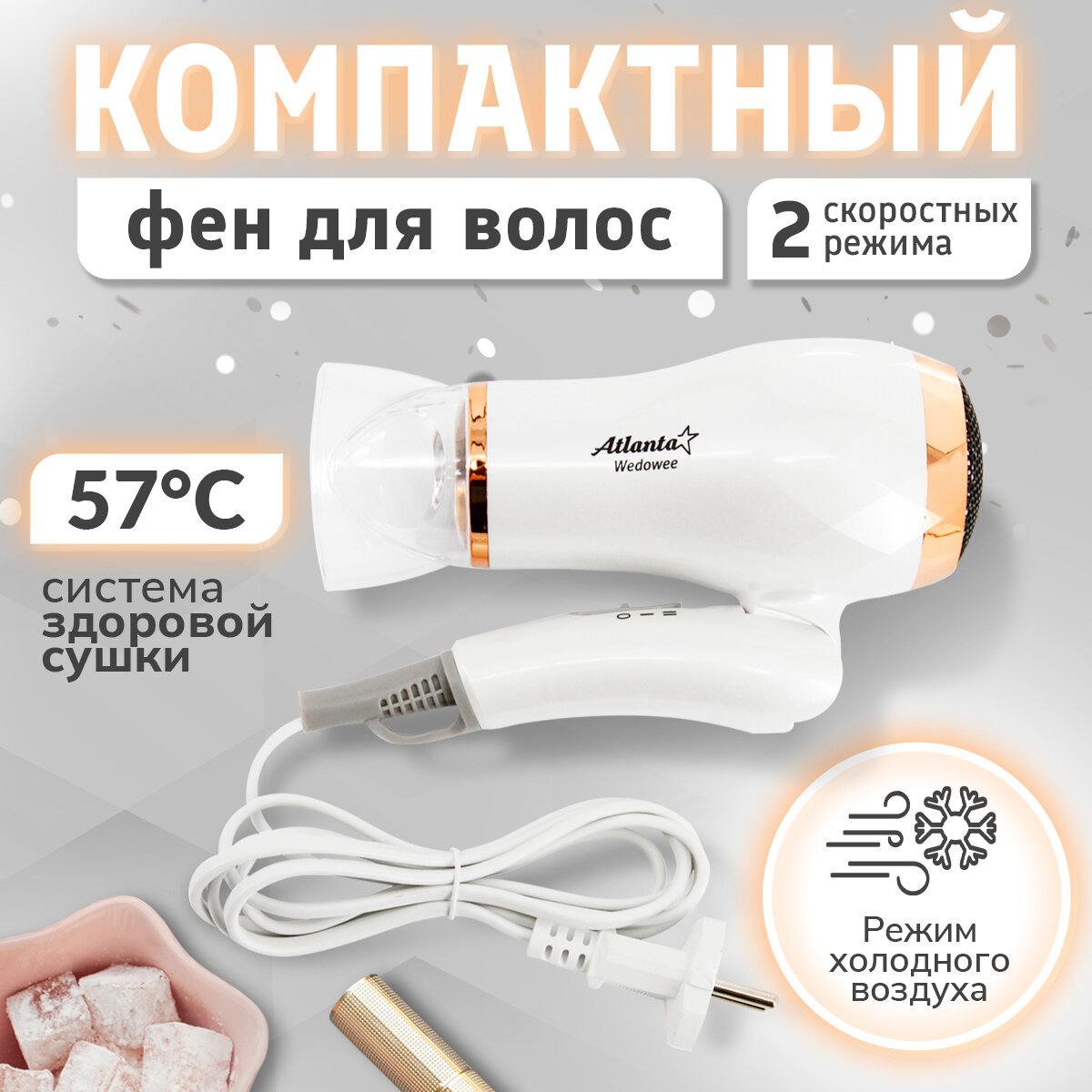 Фен ATLANTA ATH-6766 (white) дорожный, 2 режима, холодный воздух, складной, 1200 Вт