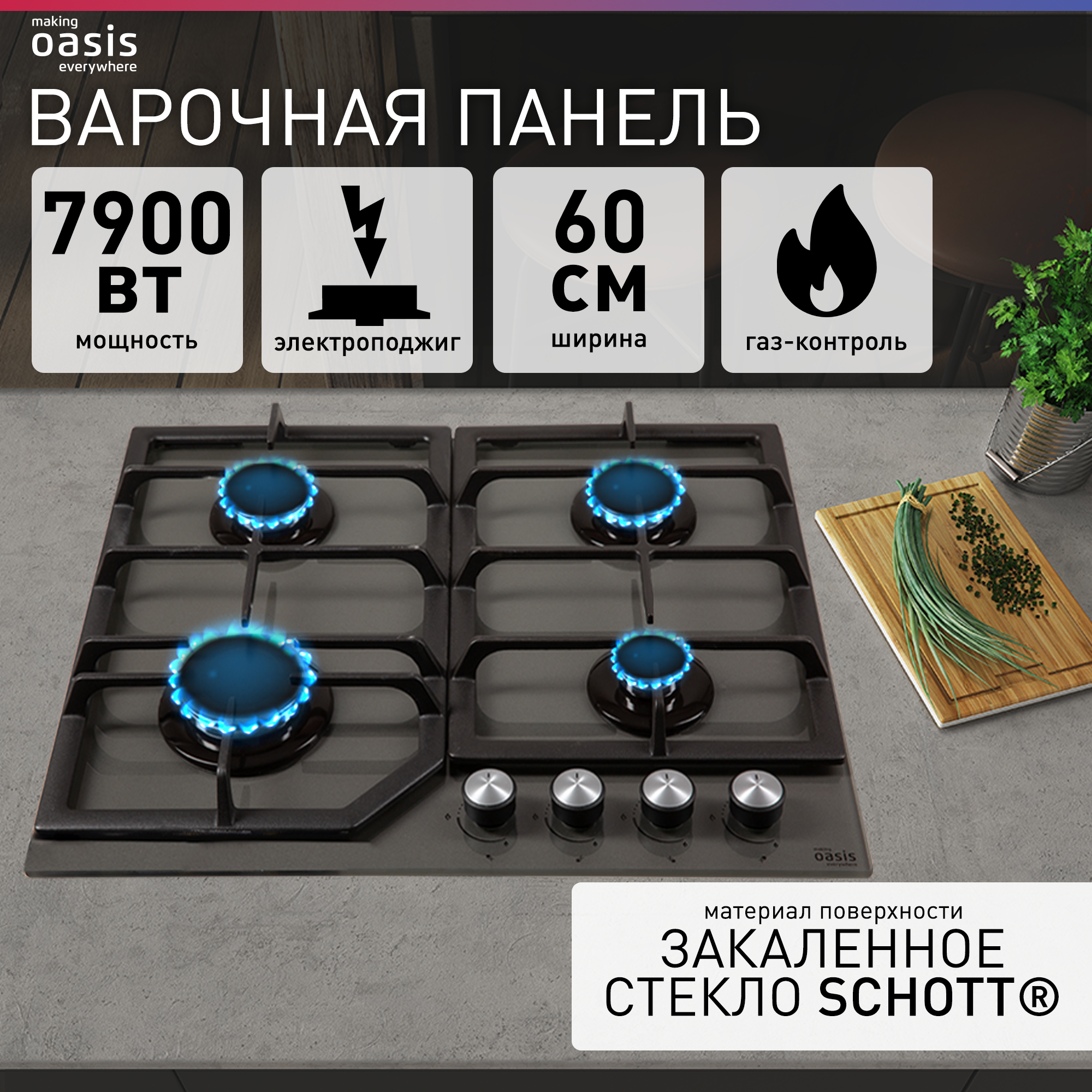 Варочная поверхность Встраиваемая панель газовая OASIS P-GI