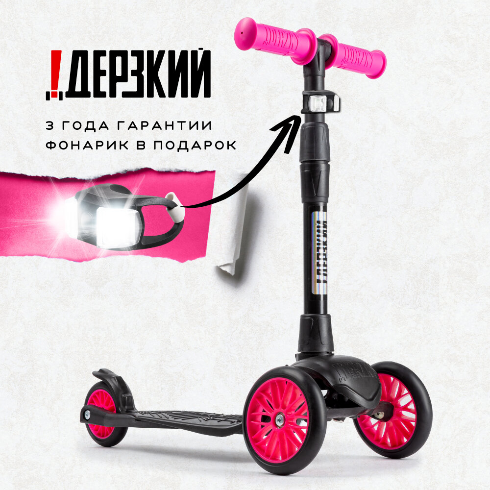 Самокаты Самокат детский трехколесный 0-5 лет !Дерзкий BABY Спорт бесшумное шасси Super CHASSIS 3-колесный 3 года гарантии, фуксия