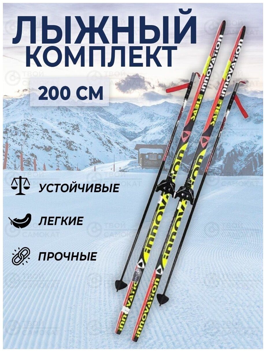 Лыжи Лыжный комплект 75 мм 200 см степ Sable Innovation / Лыжи беговые 200 см, крепления лыжные 75 мм, лыжные палки