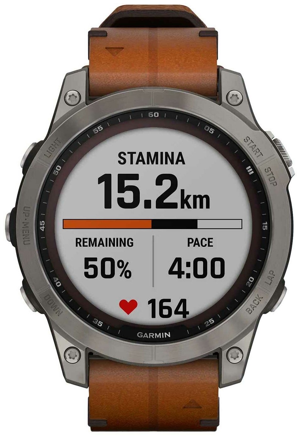 Garmin Fenix 7 Sapphire Solar - Titanium DLC with Chestnut Leather Band 010-02540-31
