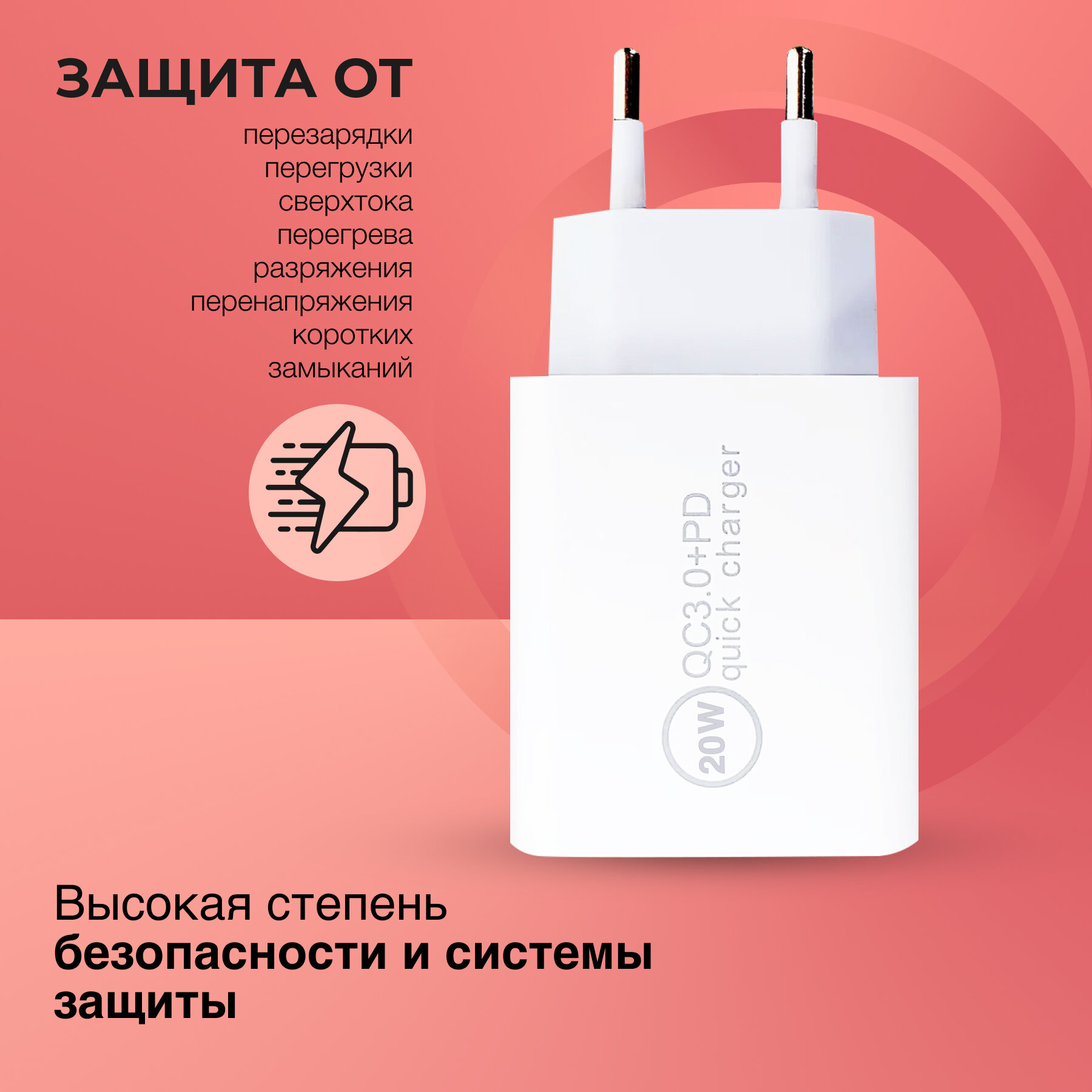 Зарядное устройство Быстрая зарядка для телефона USB, USB Type-C 20W / ЗУ Адаптер питания ЮСБ, Тайп Си 20 Ватт для двух устройств / Сетевое зарядное устройство / Белый