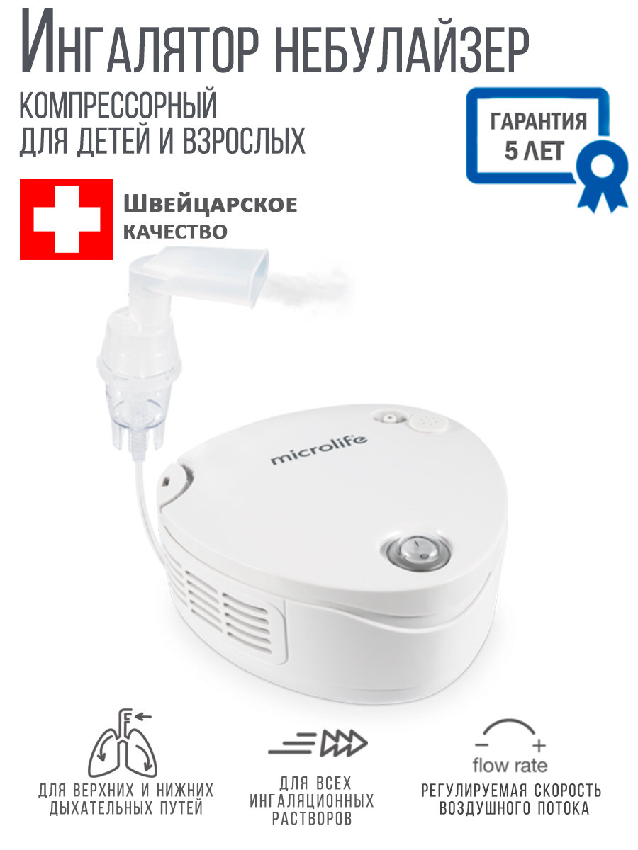 Лучшие цены. Новый Microlife NEB 210 — компрессорный небулайзер для повседневного использования, подходящий для всей семьи. Удобный небольшой размер позволяет легко транспортировать и хранить, не занимая слишком много места Эффективное лечение Для верхних и нижних дыхательных путей Быстрое лечение Высокоскоростной небулайзер для кратковременных ингаляций Регулируемая скорость воздушного потока для индивидуального лечения Полностью укомплектован С маской для взрослых и детей, мундштуком и насадкой для носа, с воздушным. Магазины в вашем городе.