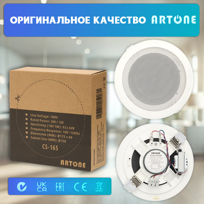 Акустическая система Колонка потолочная встраиваемая (акустическая система) ARTONE CS-165 10Вт