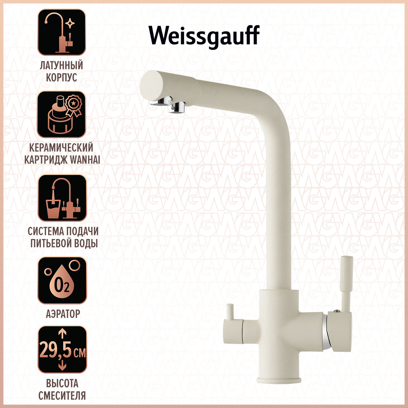 Смеситель для кухни (мойки) Weissgauff WG 01602 Beige 8 177 ₽ Подробнее