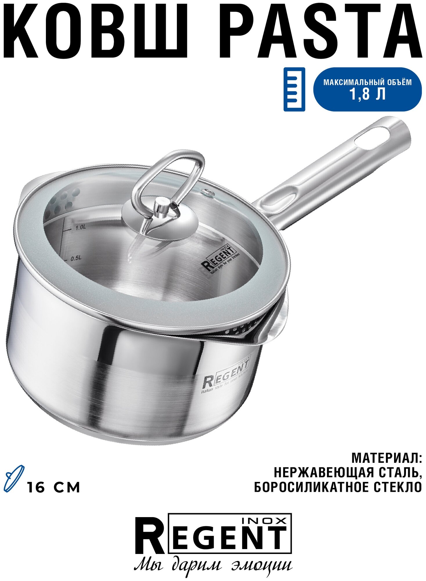 Ковш с крышкой Regent Inox PASTA vitro, 1,8 л, 16х9 см (93-PSv-01)