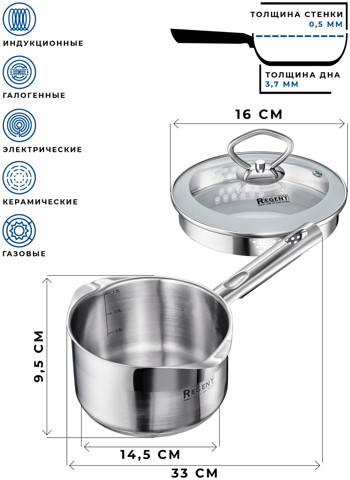 Кастрюли Ковш 1,8 л. ст/кр. 16х9 см REGENT 93-PSv-01