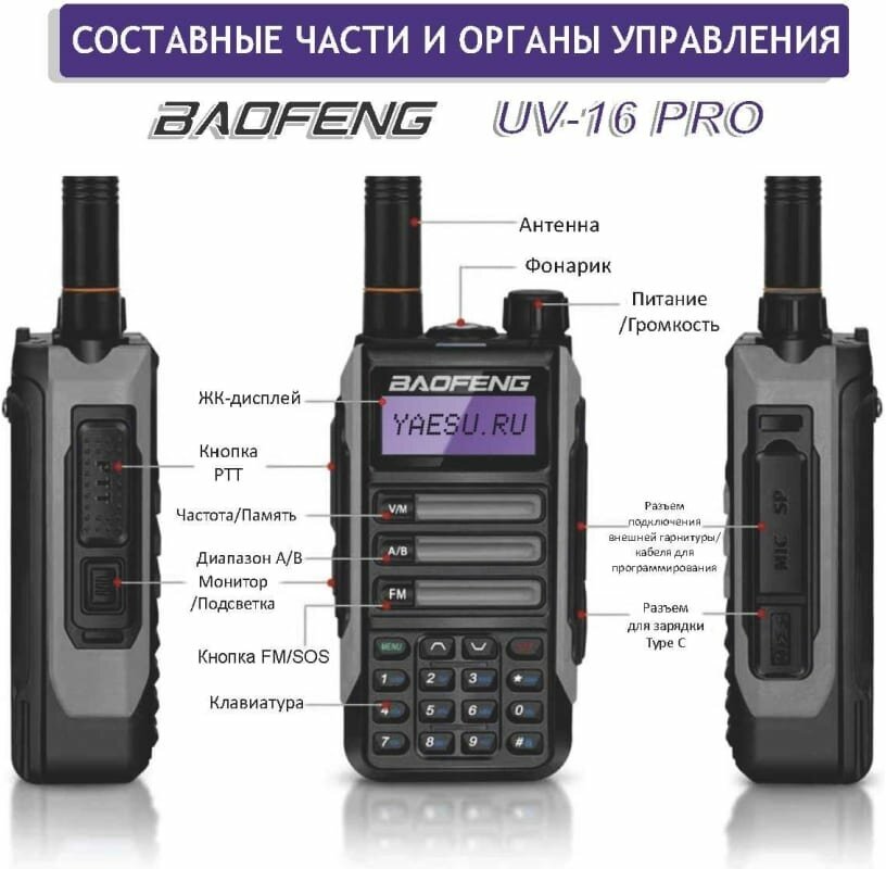 Baofeng Рация UV-16 PRO /1800мАч ( 136-174/400-480) МГц, черный 00029154 . 4 690 ₽ Подробнее
