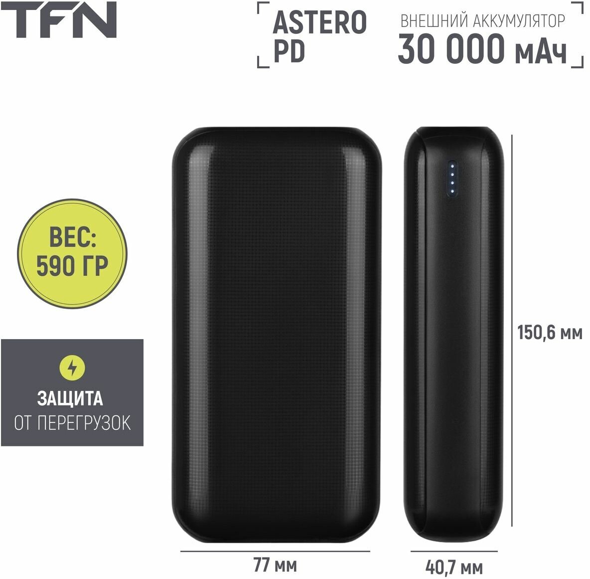 Powerbank аккумулятор Внешний аккумулятор TFN 30.000 мач Astero 30 PD черный (TFNTFN-PB-251-BK)