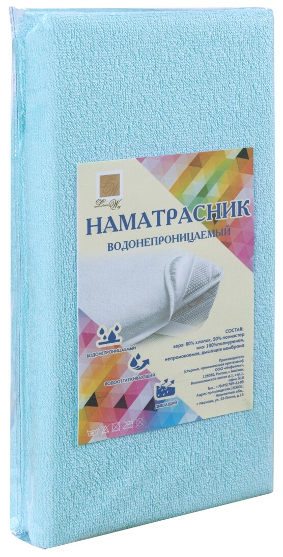 Наматрасник 80х160 водонепроницаемый ЧЗ голубой Linen Way