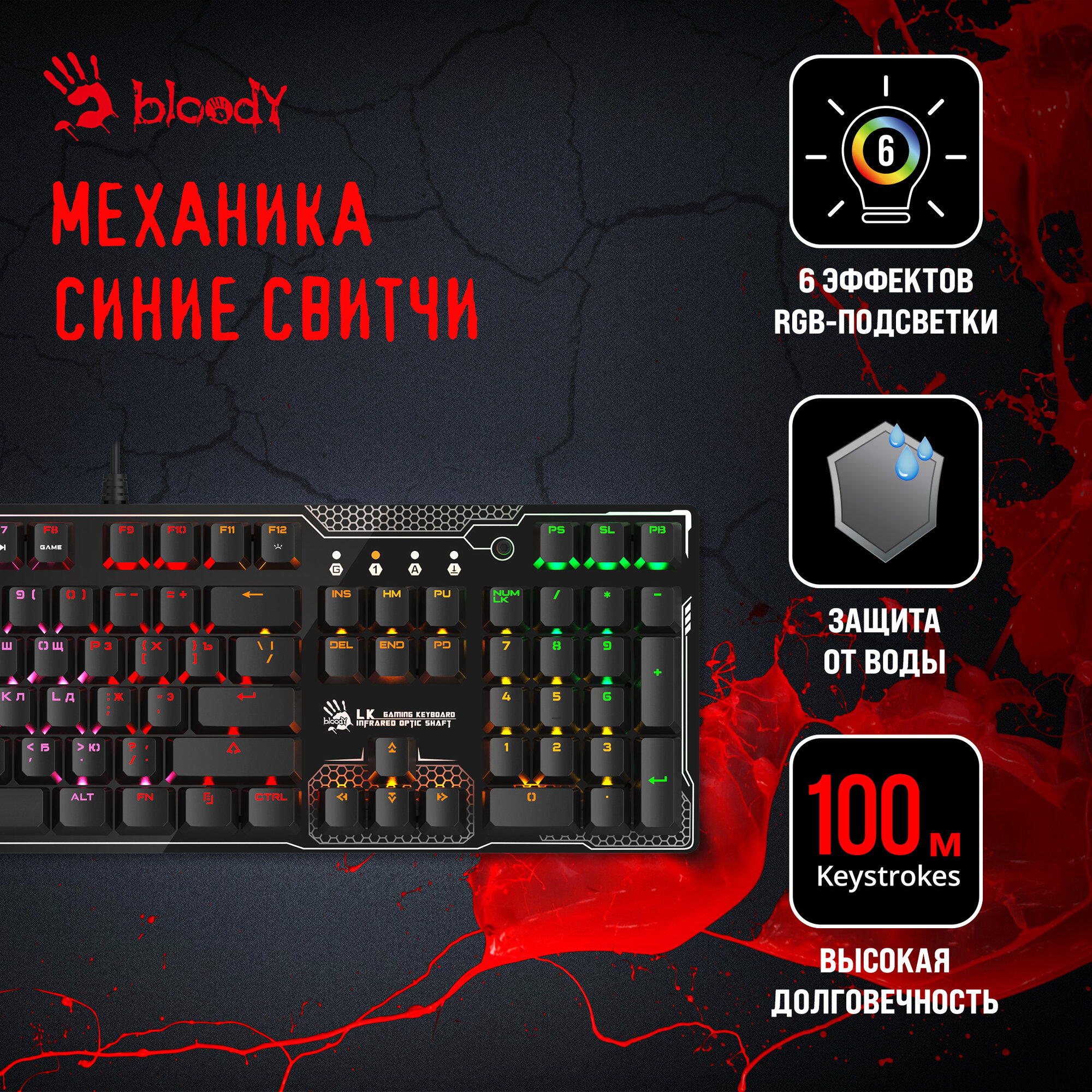 Клавиатуры Клавиатура A4Tech Bloody B810R Battlefield, русские и английские буквы, рисунок (b810r (battlefield))