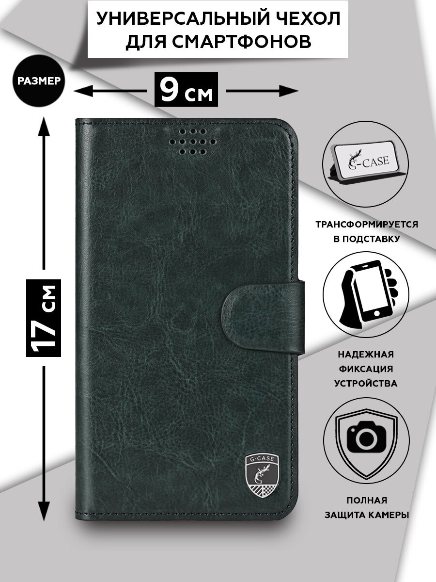 Чехлы для мобильных телефонов Универсальный чехол-книжка для смартфонов с размером до 17*9 см., G-Case Business, темно-зеленый