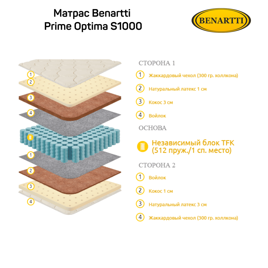 Взрослые матрасы Benartti Prime Optima S1000 90x195