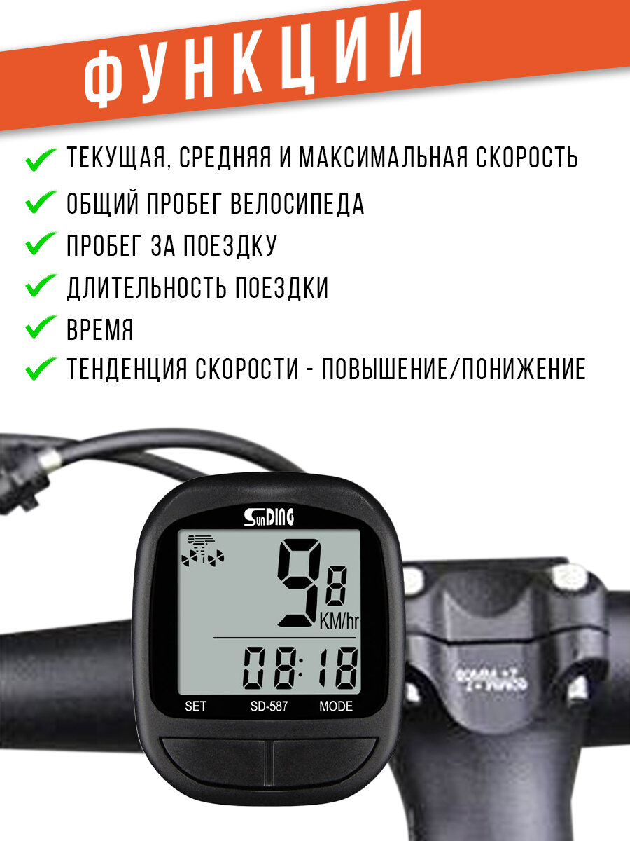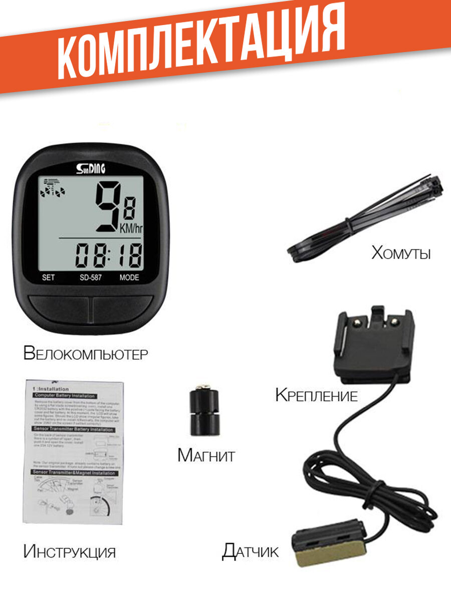 Велокомпьютеры и спидометры Велокомпьютер проводной - спидометр, одометр, секундомер