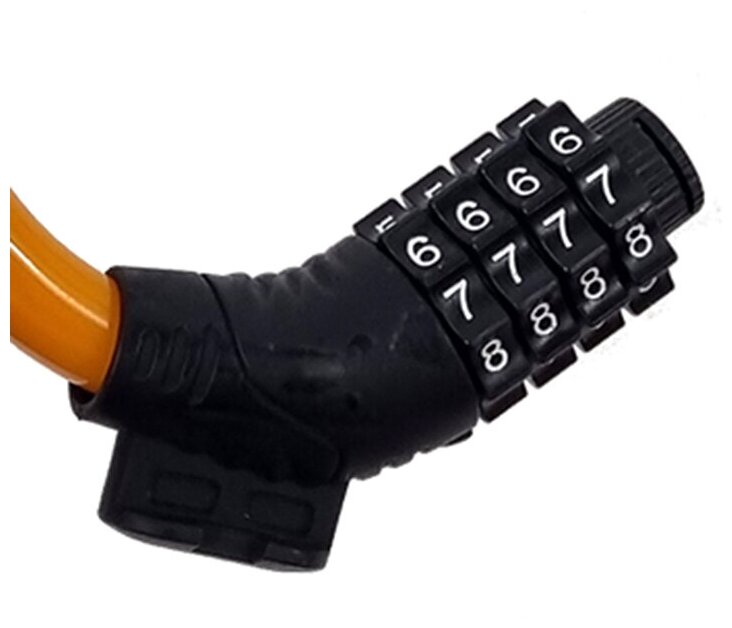 Велозамок / блокиратор Замок велосипедный (велозамок) противоугонный кодовый, трос в оплетке, 91 см, оранжевый