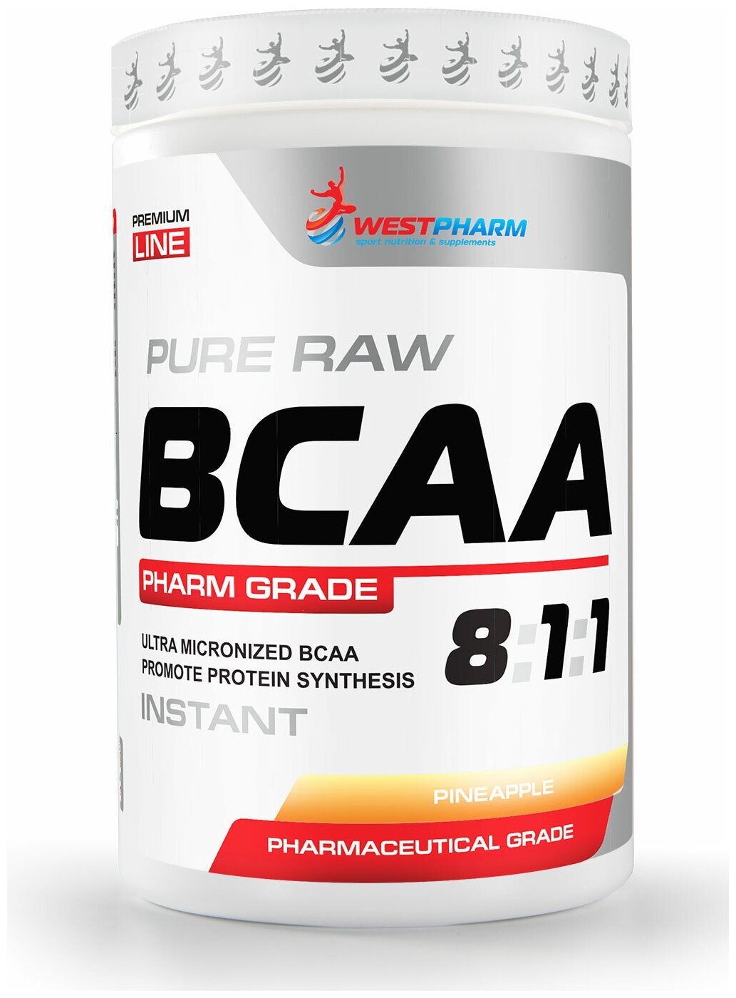 Аминокислоты WestPharm BCAA 8:1:1 / БЦАА 8:1:1 порошок со вкусом Ананас / Незаменимые аминокислоты / Рост мышечной массы / Выносливость / 400 гр., 80 порций
