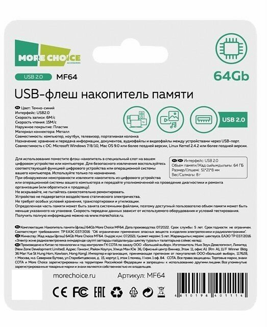 Лучшие цены. Хотите надежное и быстрое решение для хранения и переноса больших объемов данных? Тогда флешка More Choice MF64 - ваш выбор! Эта компактная и стильная usb флешка 64 гб, позволяющий сохранить множество документов, фотографий, видео и музыки. Благодаря USB 2.0 и высокой скорости передачи данных, вы сможете быстро и легко перенести свои файлы между устройствами. Кроме того, flash накопитель имеет надежную защиту от вирусов и несанкционированного доступа к вашей информации. Магазины в вашем городе.