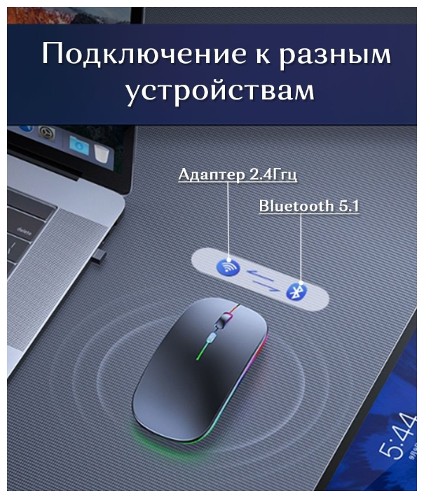Лучшие цены. Беспроводная бесшумная оптическая компьютерная мышь с подсветкой и встроенным аккумулятором — оптимальное решение для работы, учебы и просто комфортного обращения с вашим устройством на Windows, MAC, iOS и Android Беспроводная оптическая компьютерная мышь подключается напрямую в USB-порт. Подходит для работы с ноутбуком и настольным ПК. Подключается к устройствам под управлением Windows 7+, macOS 10.10+, Android 5.0+ или iPadOS 13.4+. Магазины в вашем городе.