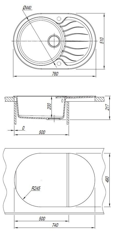 Мойка для кухни врезная каменная Dr. Gans БЕРТА-760, цвет черный, с крылом, овальная, 760х510х217 мм