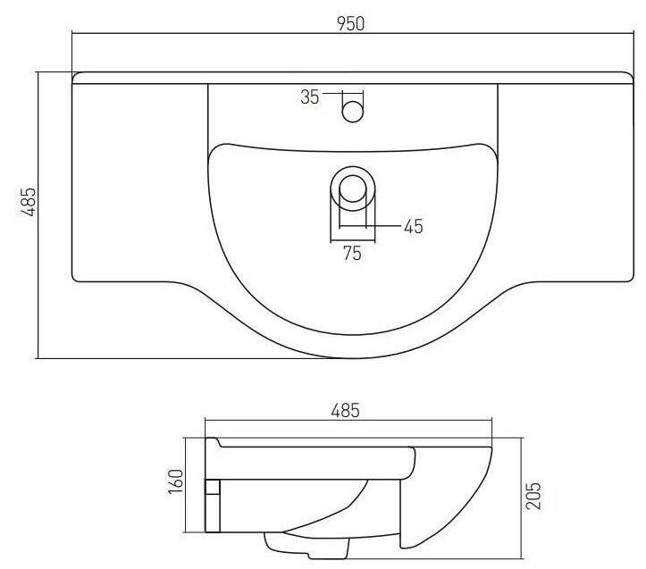 Лучшие цены. Габариты (шгв): 95x48,5x20,5 см полувстраиваемая фаянсовая 1 готов. отверстие под смес. диаметр слива: 4.5 см слив-перелив в компл. Магазины в вашем городе.