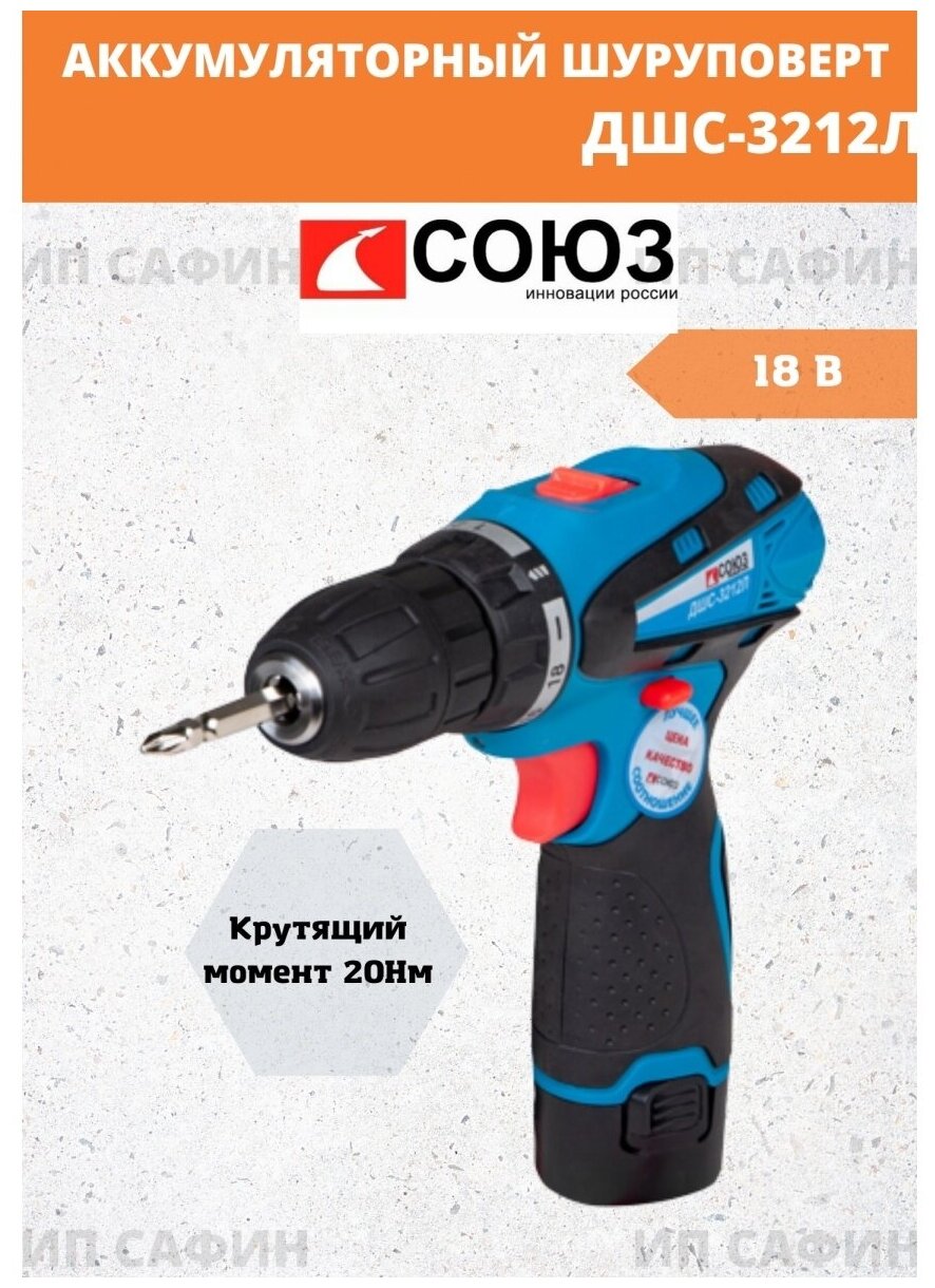 Аккумуляторный шуруповерт СОЮЗ ДШС-3212Л