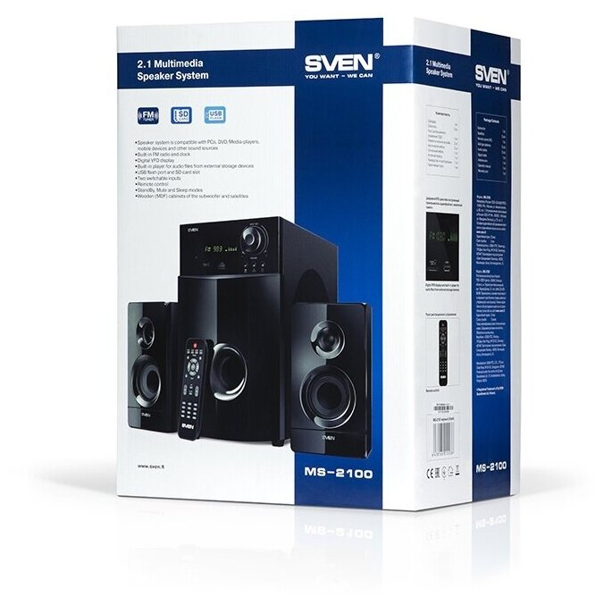 SVEN MS-2100, черный, акустическая система 2.1, мощность (RMS): 50вт + 2х15вт, SD/USB, FM-радио, VFD-дисплей, пульт ду SVEN MS-2100, черный, акустическая система 2.1, мощность (RMS): 50вт + 2х15вт, SD/USB, FM-радио, VFD-дисплей, пульт ду 11 700 ₽ Подробнее