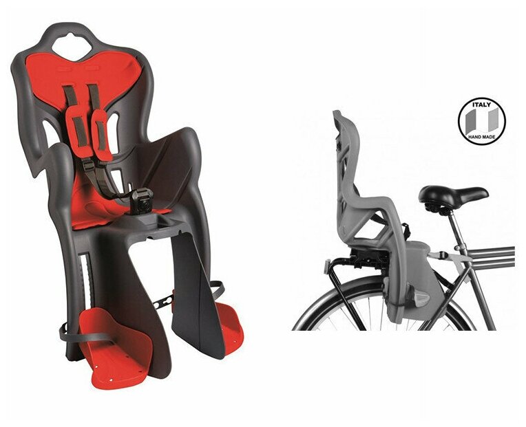 Детские велокресла BELLELLI Сидение заднее B-One Clamp, тёмно-серое с красной вставкой до 22кг art. NBE80036