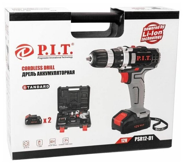 Дрель-шуруповерт P.I.T. PSR 12-D1, 12 В, 2х1.5 Ач, Li-lon, 450/1450 об/мин, 22 Нм, реверс 5 322 ₽ Подробнее