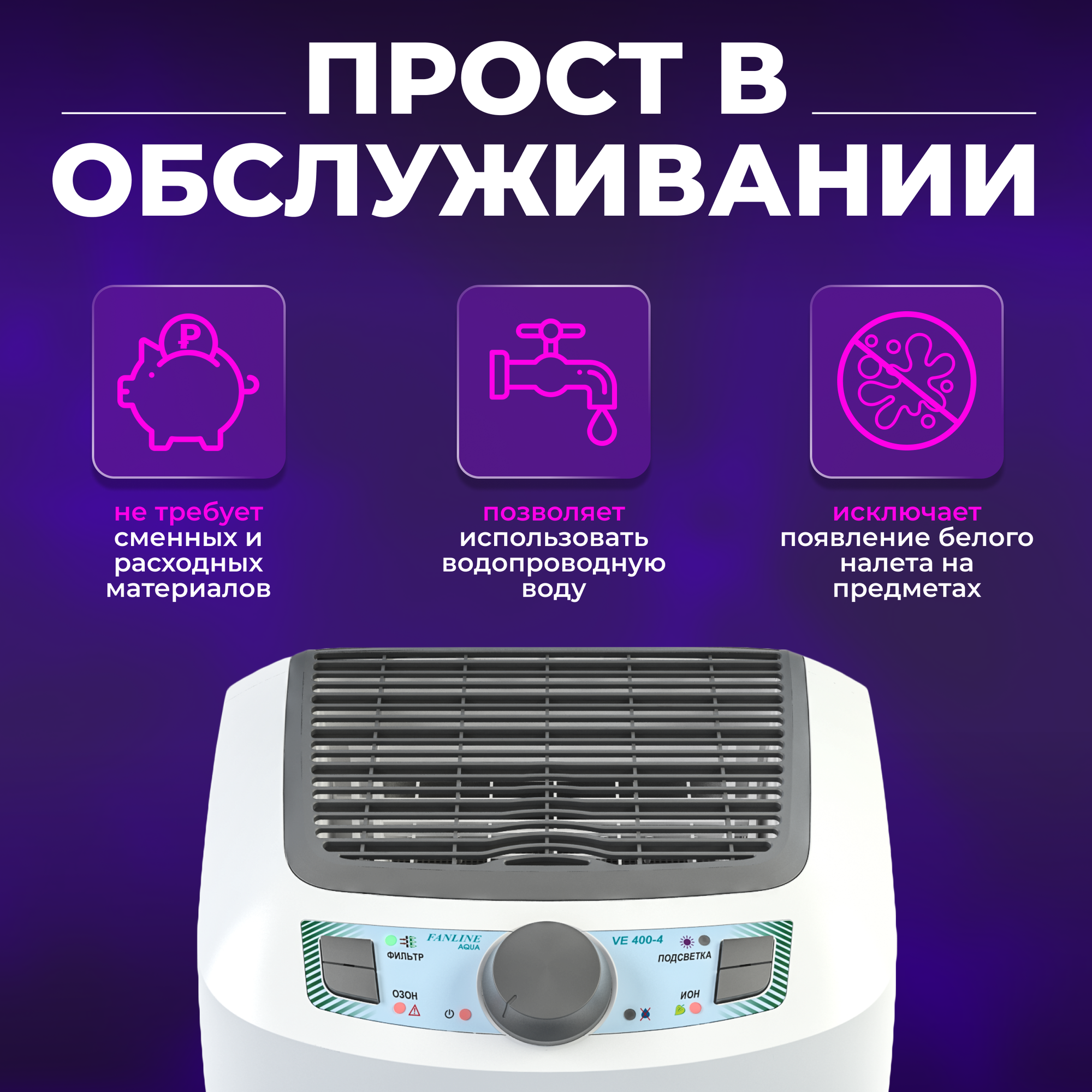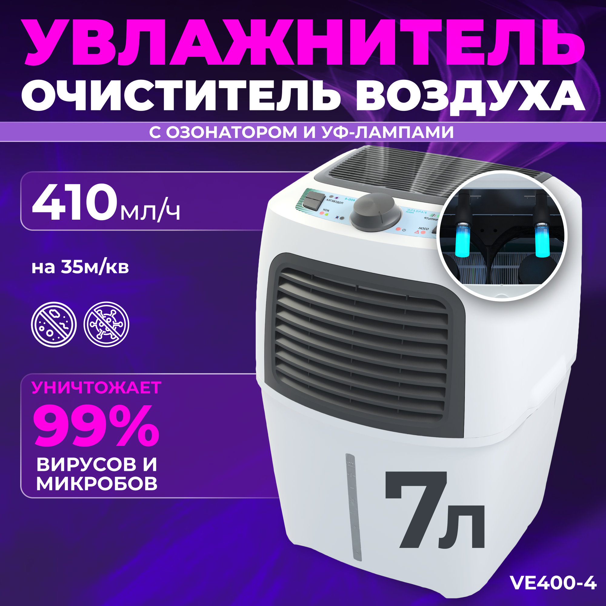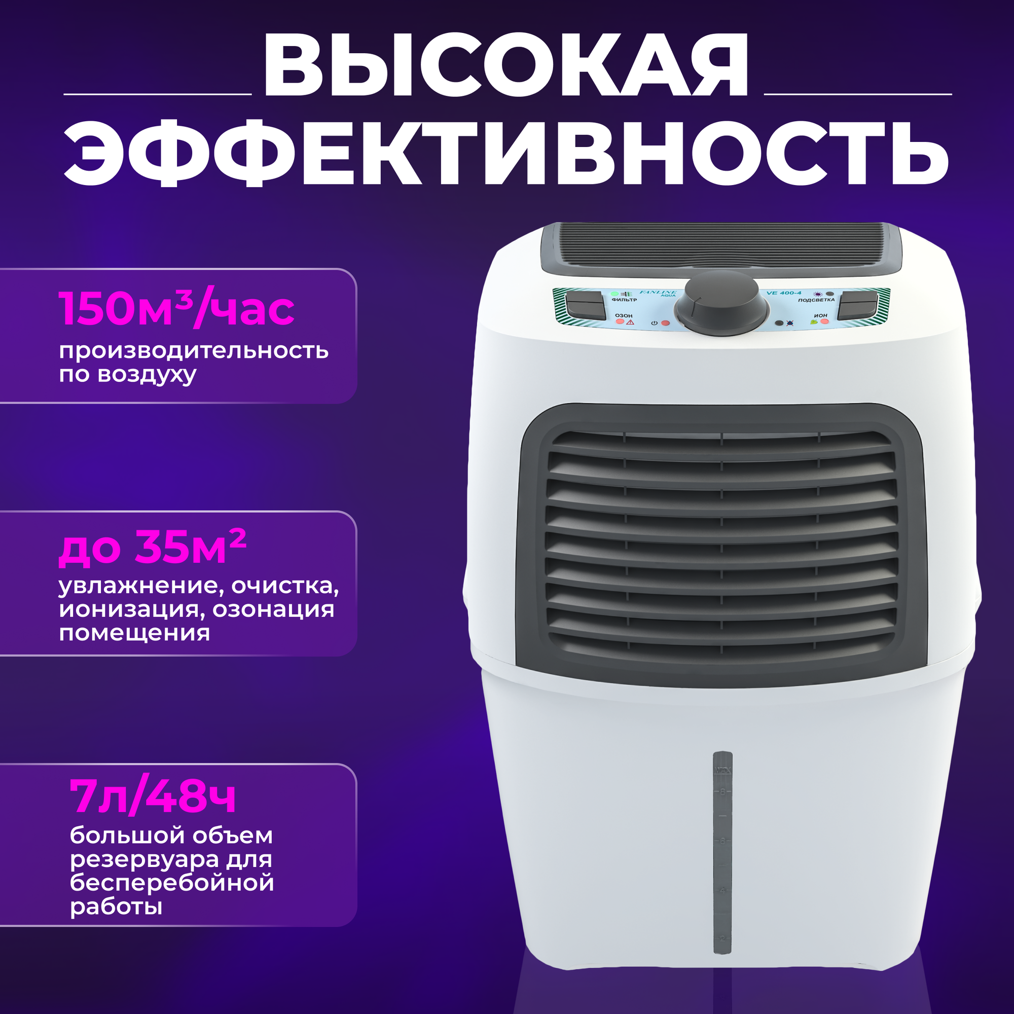 Воздухоочистители Увлажнитель очиститель воздуха "Fanline Aqua VE400-4" с ионизатором и двумя УФ лампами с производительностью 410 гр/ч