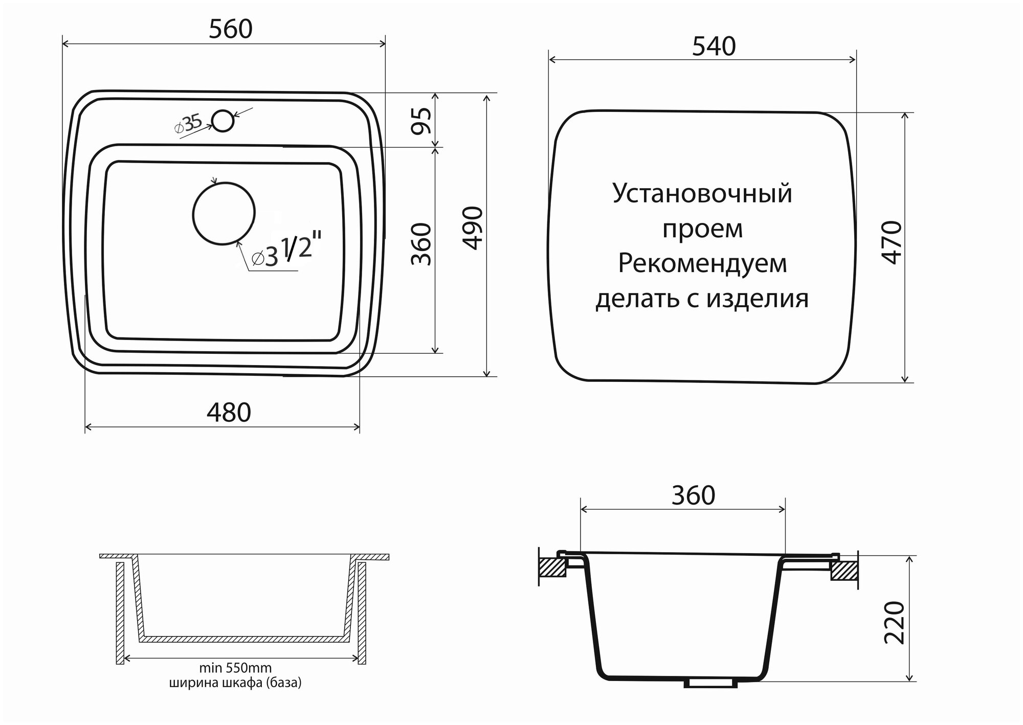 | Размеры врезного отверстия (накладная) | 660x480 мм |