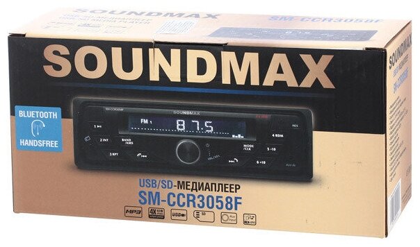 Лучшие цены. Автомобильная магнитола Soundmax SM-CCR3058F – современный музыкальный проигрыватель! Ресивер воспроизводит аудиофайлы MP3 и выводит звуковой поток в 4 канала мощностью 40 Вт каждый. Устройство обладает небольшим размером посадочного места 1din и включает в себя хороший набор технических характеристик. Эта модель оборудована входом USB, слотом для карты формата SD и AUX-разъемом. Магазины в вашем городе.
