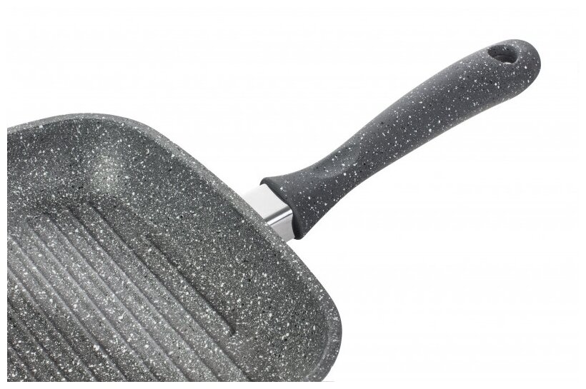 Лучшие цены. Cковорода-гриль Bekker 7915-BK "SilverMarble" из литого алюминия, имеет внутри антипригарное серое мраморноепокрытие, снаружи жаропрочное серое мраморное покрытие. Ручка сковороды изтермостойкой пластмассы удобно лежит в руке и не скользит. Рифленое дно. Подходит для плит: газовая, электрическая, стеклокерамическая, галогеновая, индукционная и чистки в посудомоечной машине. Магазины в вашем городе.