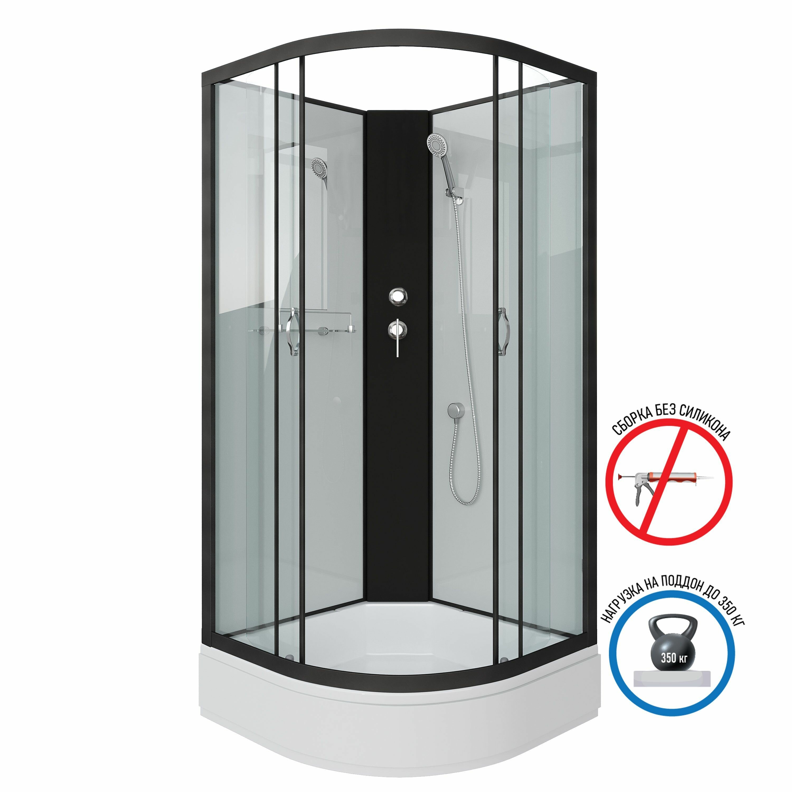 Душевые кабины Душевая кабина Niagara NG-6701-14BK (900х900х2000) средний поддон (26см) стекло прозрачное черные профили