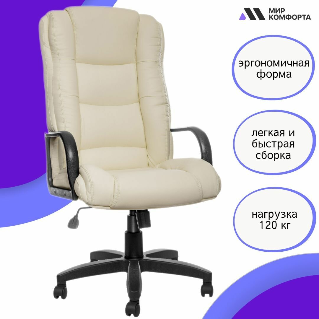 Кресло компьютерное, кресло руководителя, кресло офисное The World of Comfortt Элегант-1 бежевый, обивка: искусственная кожа, крестовина пластик