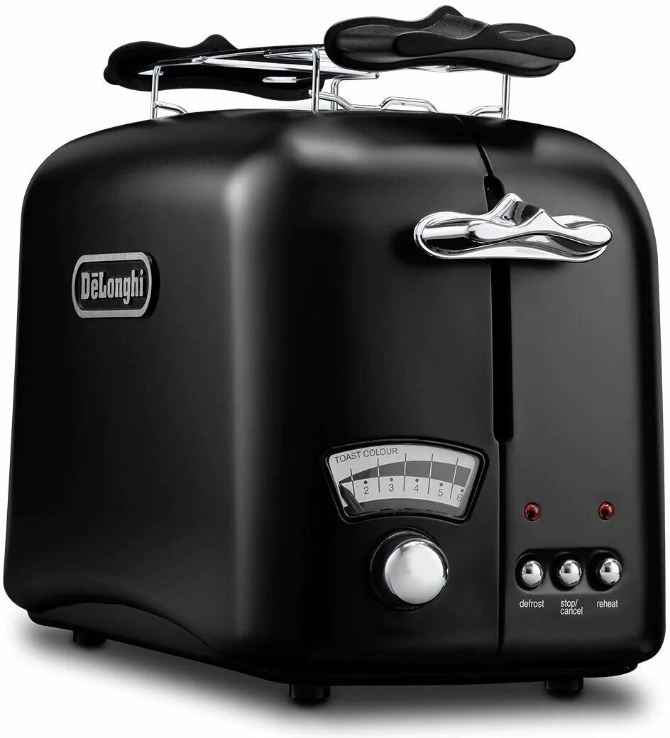 Лучшие цены. Тостер DeLonghi CT021. BK – элегантная модель матового черного цвета, которая гармонично впишется в классический или винтажный интерьер. Плавные линии корпуса и поворотный регулятор степени прожарки с аналоговой шкалой привносят в дизайн ноты ретро и привлекают к себе внимание. Вы сможете слегка подсушить тост или хорошо подрумянить его и довести до аппетитного хруста – доступно шесть уровней приготовления. Легко извлечь маленькие кусочки поможет функция «Экстра-подъем». Магазины в вашем городе.