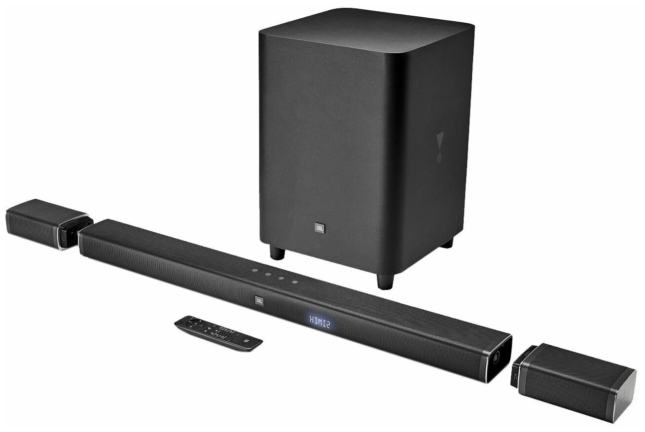 Лучшие цены. JBL Bar 5.1 превращается из звуковой панели в настоящий беспроводной 5,1- канальный домашний кинотеатр с фантастическим изображением и музыкой. Звуковая панель общей мощностью системы 510 Вт оснащена двумя съемными беспроводными динамиками пространственного звука на аккумуляторах, рассчитанных на 10 часов работы, беспроводным 10-дюймовым сабвуфером, тремя входами HDMI™ для подключения к устройствам 4K и Bluetooth™. Магазины в вашем городе.
