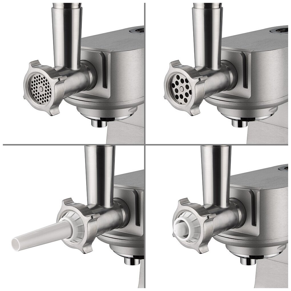 | Насадки | для замеса теста / для взбивания / диск для шинковки/нарезки (2 шт) / для смешивания, для колбас и кеббе, 5 насадок для приготовления пасты |