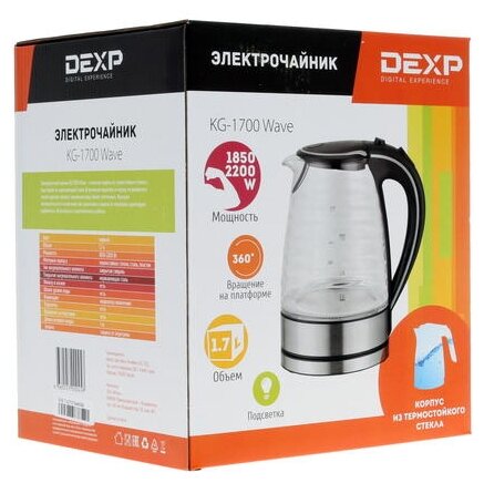 Электрочайники Чайник DEXP KG-1700 Wave, серебристый