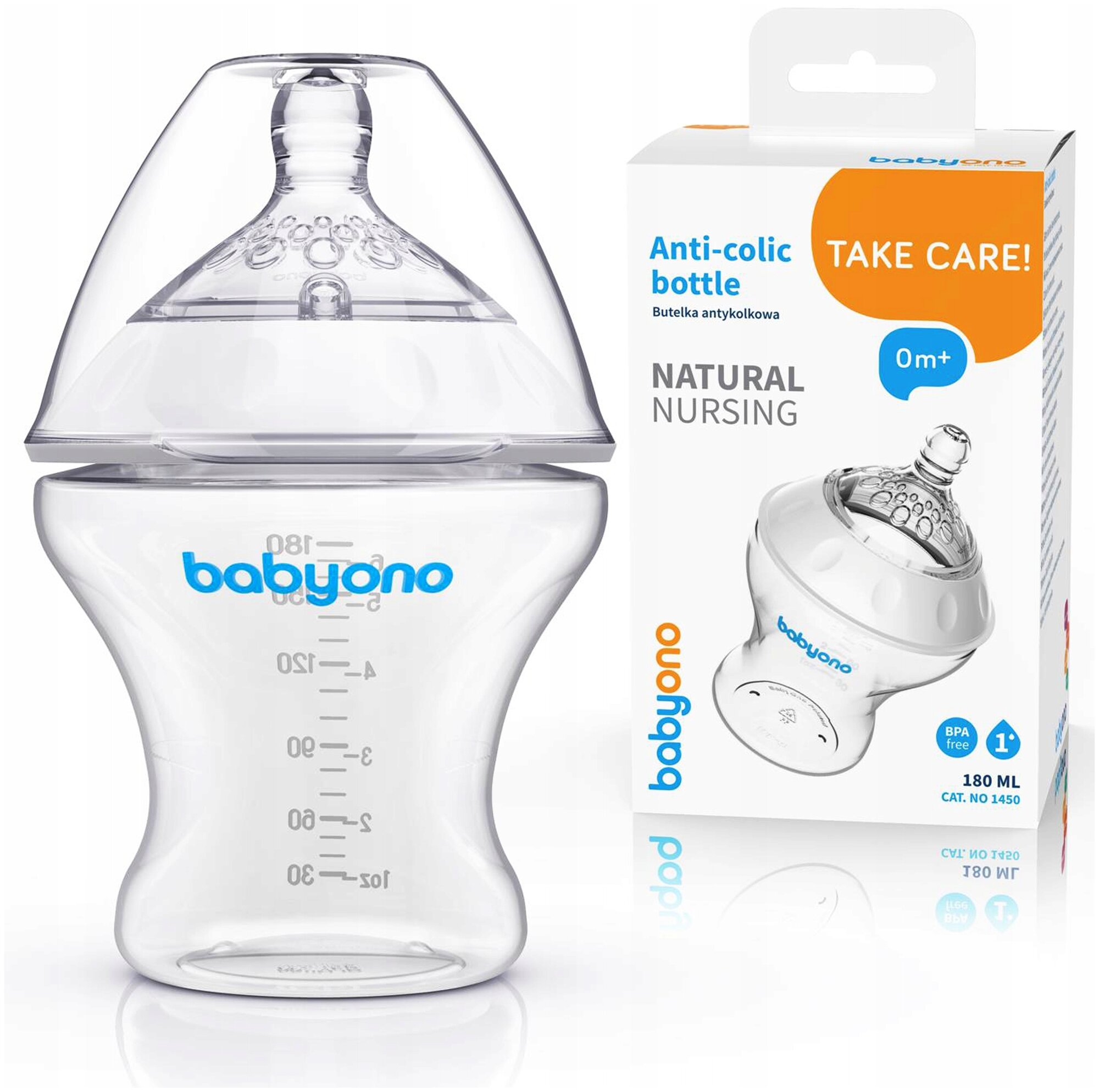 BabyOno Бутылочка для кормления антиколиковая, 180 мл, от 0 мес.