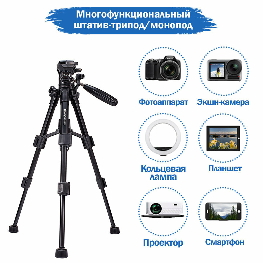 Трипод JMARY KP-2203, напольный для фото/видеокамер, 315-618мм, черный 3 019 ₽ Подробнее